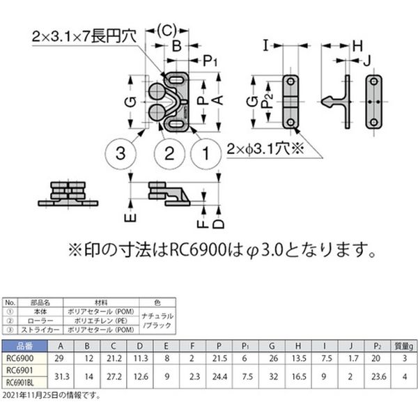 ・色:ナチュラル・全長(mm):31.3・押込力(N/kgf):21.6/2.2・引張力(N/kgf):31.4/3.2・メス部:ポリアセタール(POM)、ポリエチレン(PE)・オス部:ポリアセタール(POM)・生産国 日本・JANコード 4510932750301・質量 4gRC6901 HD