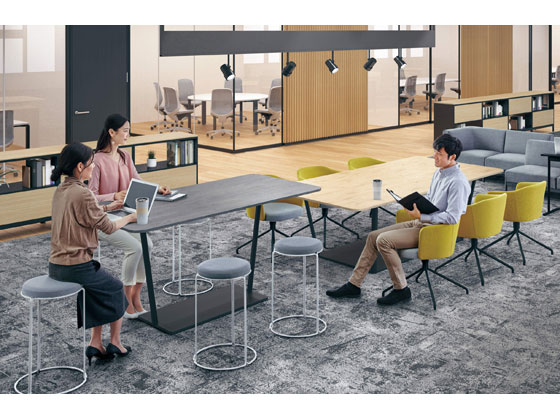 【商品説明】カフェのような居心地のよいラフさと、ビジネスシーンに合う凛としたデザインを併せ持ったテーブルです。