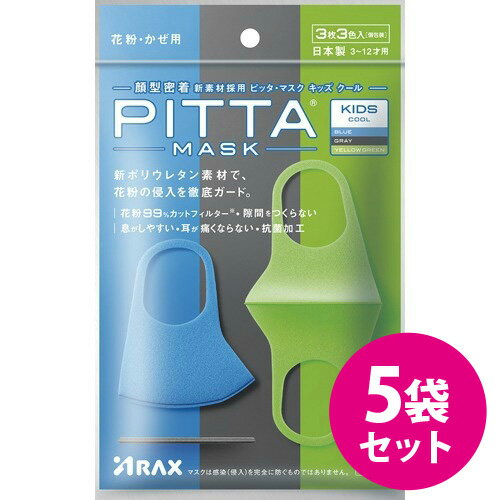 【日本製】KIDS COOL 3色入り 5袋セット PITTA MASK ピッタマスク 3枚入り 送料無料 2020新リニューアル 抗菌加工の追加 洗える回数5回にアップ 在庫あり 風邪 ほこり 花粉対策 子供用 洗えるマスク 全国マスク工業会 会員 飛沫防止 詳しく見る